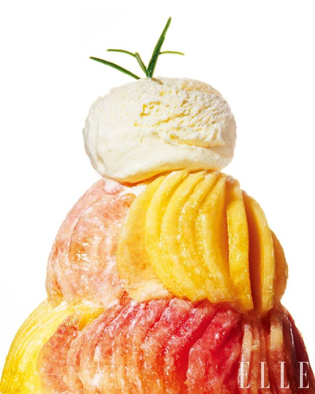 얇게 썬 복숭아를 겹겹이 올린 ‘미스틱 래빗’의 ‘생복숭아 빙수’는 복숭아 러버라면 그냥 지나칠 수 없는 디저트다. 요거트 베이스의 얼음과 생복숭아, 바닐라 아이스크림의 삼합이 상큼 달달한 맛은 물론 다채로운 식감을 선사한다. 가격 변동,