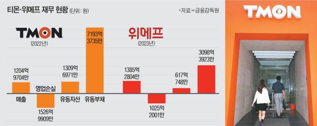 티몬과 위메프가 1년 안에 갚아야 하는 유동부채는 각각 7193억3735만원(2022년), 3098억3923만원(2023년)으로 1년 내 현금화할 수 있는 유동자산(티몬 1309억6971만원, 위메프 617억748만원)과 비교할 수 없을 정도로 불어났다.