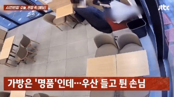 지난 23일 JTBC '사건반장'에는 지난 22일 서울 양천구 한 프랜차이즈 카페에서 발생한 우산 절도사건이 전파를 탔다.
