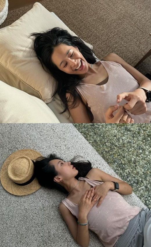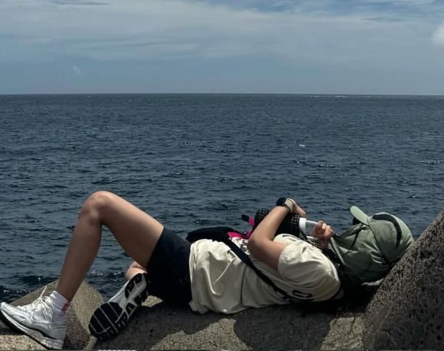 유리는 사진 뿐 아니라 테트라포드 위에 누워 여유를 즐기는 영상도 함께 게재했다.