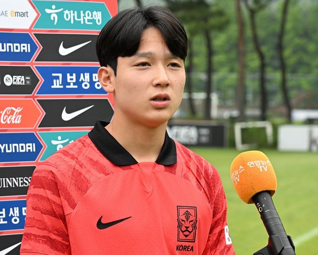 17세 이하(U-17) 남자 축구대표팀 미드필더 양민혁이 지난해 6월 7일 오후 경기도 파주 축구국가대표트레이닝센터(NFC)에서 열린 미디어데이에서 취재진과 인터뷰하고 있다. / 뉴스1