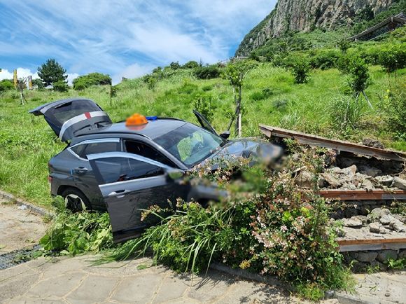 24일 제주 서귀포경찰서에 따르면 전날 낮 12시 5분쯤 서귀포시 안덕면 산방산 공영주차장 인근 도로에서 운전자 70대 A씨가 몰던 전기 택시가 도로변에 설치된 구조물로 돌진하는 사고가 발생했다.