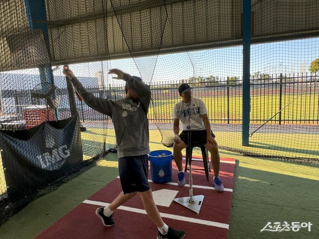 IMG아카데미 학생의 타격 훈련 모습. 훈련 이후 개인 트레이닝에 있어서 철두철미한 1대1 레슨을 지원하고 있다. 사진제공 ㅣ 봉중근