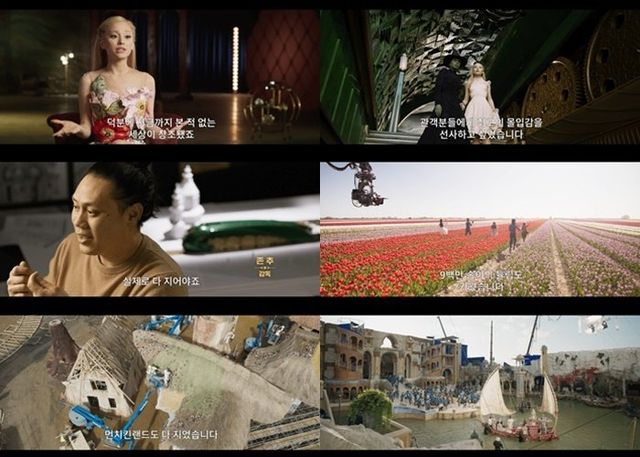 ‘월드’라는 이름의 피처렛 영상에는 거대한 세계관을 직접 만들어 구현해 낸 제작진과 배우들의 열정과 애정이 담겨 있다. 제작진은 에메랄드 시티, 먼치킨랜드 등 영화의 주요 배경이 되는 장소의 세트를 직접 제작하여 크고 작은 디테일마저 놓치지 않았다. 특히 제작진은 평원에 직접 심어서 재배한 생화 튤립 9백만 송이를 스크린에 담아 내며 마치 관객이 영화 속 세계관에 들어간 것과 같은 느낌을 선사할 전망이다.