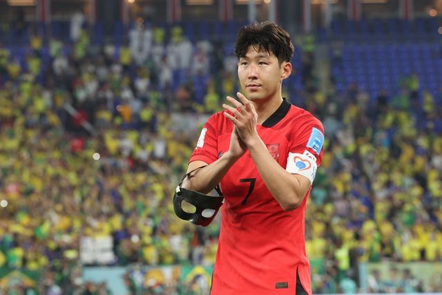 2022년 12월 5일 오후(현지 시각) 카타르 도하 스타디움974에서 열린 2022 카타르 월드컵 16강 대한민국과 브라질의 경기에서 1대 4로 패배한 대한민국 손흥민이 응원단을 향해 박수를 보내고 있다. / 뉴스1