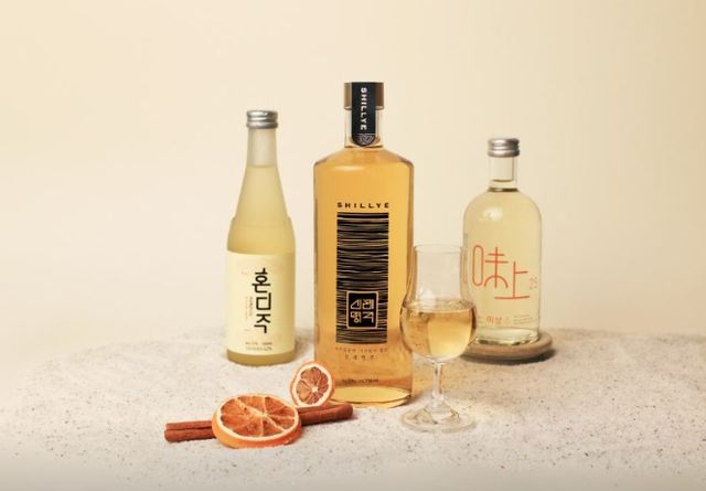 | ▲ 특허 받은 감귤 발효 효모를 활용한 발효주 ‘혼디주’와 증류주 ‘미상25’, ‘신례명주’ |