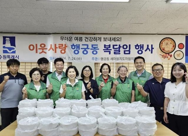 [와이뉴스] 수원시 팔달구 행궁동 새마을지도자협의회는 지난 24일 관내 홀몸 어르신들에게 삼계탕을 전달하는 ‘이웃사랑 행궁동 복달임’ 행사를 진행했다. 이날 행사에는 행궁동 새마을부녀회와 통장협의회도 함께 참여해 나눔과 봉사의 의미를 더했다.