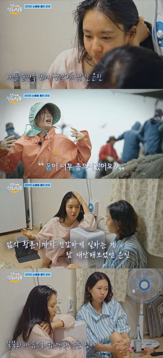 안은진은 “난 갑자기 오늘 내가 왜 슬펐는지 떠올랐다. 왜 그랬냐면 그 멸치 털이 배에서 우리 아빠뻘인데 ‘몸이 너무 좋으시겠어요’라고 하니까 ‘노동을 해서 몸이 너무 좋지’라고 하시고 어머니 만나니까 76세라고 하시고”라고 말했다.
