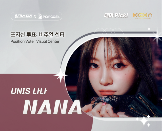 지난 7월 11일부터 7월 24일까지 진행된 일간스포츠와 팬캐스트가 함께하는 테마 픽 ‘포지션 투표: 비주얼 센터’에서 나나는 득표율 45.84%에 해당하는 12만 2798표로 1위에 올랐다.
