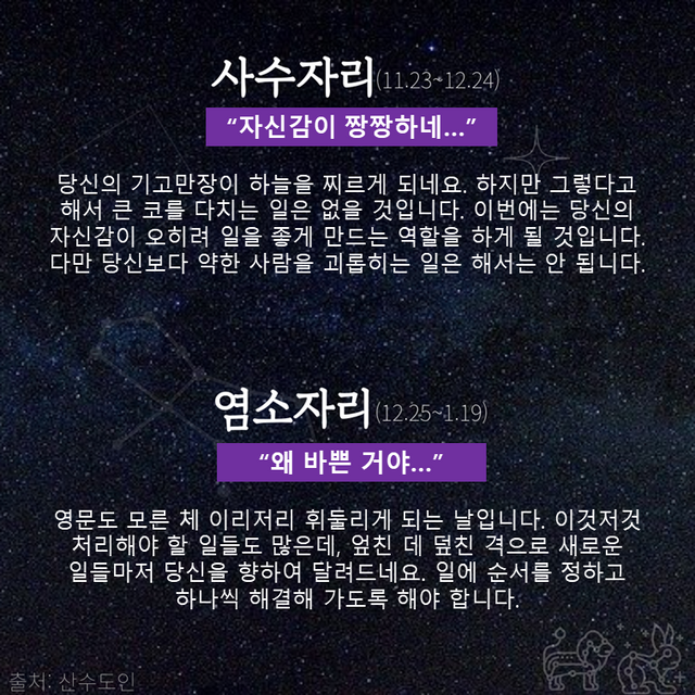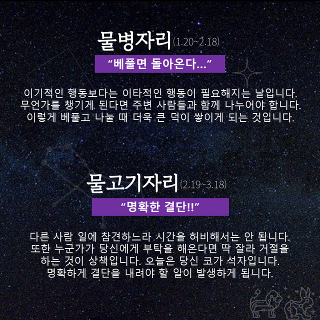 마음 속에 별자리가 가득 들어와 있는 듯 신비로운 느낌입니다. 우연한 만남과 뜻밖의 행운이 발생하게 되는 때이니 약간의 예지력마저 생긴 느낌이라고 보여지네요. 평상시에는 보이지 않던 것들이 보이게 되는 날이라고 할 수 있습니다.