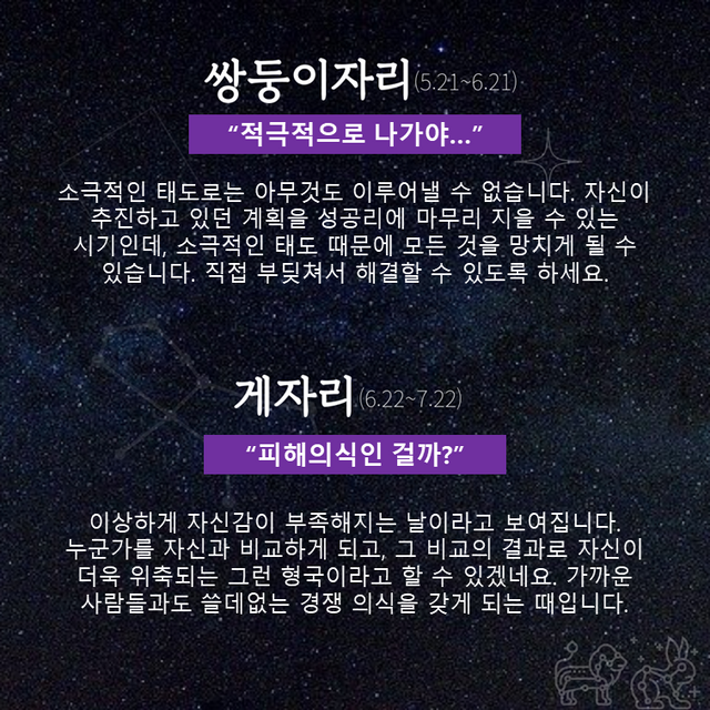 Δ 쌍둥이자리 : 적극적으로 나가야…
