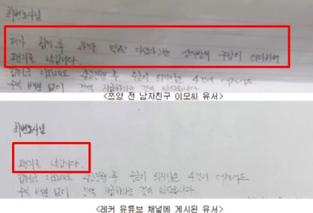 그런데 최씨가 공개한 유서는 이날 JTBC를 통해 A씨 유족이 공개한 유서와 일부 내용이 달랐다. A씨가 ‘나는 쯔양의 과거를 말하고 다니지 않았다’고 호소하는 내용이 최씨가 공개한 유서에는 빠진 것이다.