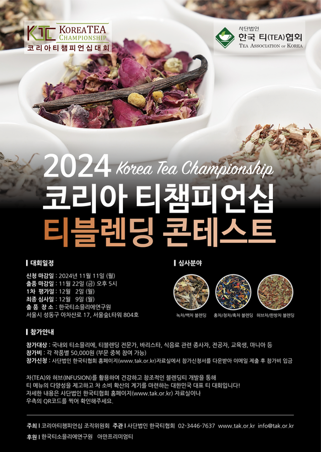 한국티협회 정승호 협회장은 “세계 티 시장이 꾸준히 성장하는 가운데 코리아티챔피언십이 미래 티 전문가 발굴과 창의적이고 품질 좋은 국내 대표 티 브랜드 탄생의 발판이 되기를 기대한다”고 밝혔다.