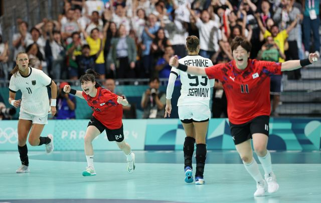헨리크 시그넬(스웨덴) 감독이 지휘하는 한국은 26일(한국시간) 프랑스 파리의 사우스 파리 아레나6에서 열린 2024 파리 올림픽 핸드볼 여자부 조별리그 A조 1차전 독일과 경기에서 23-22로 이겼다. 14-18, 4점 차로 밀리며 패색이 짙은 상황에서 류은희와 전지연이 연속 골로 추격했고, 강은혜가 종료 8분 전 동점 득점을 해냈다. 이후 박빙 승부가 이어졌고, 우빛나가 7m 스로를 성공하며 앞서간 뒤 강경민이 점수 차를 벌리는 추가 득점을 해냈다.