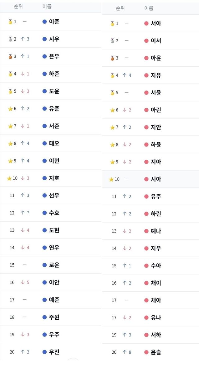 특이한건 요즘엔 ㅇ받침 이름 있는 애들이 아예 없네요...