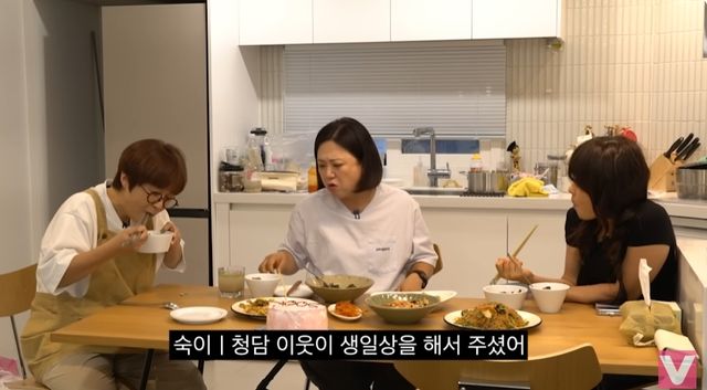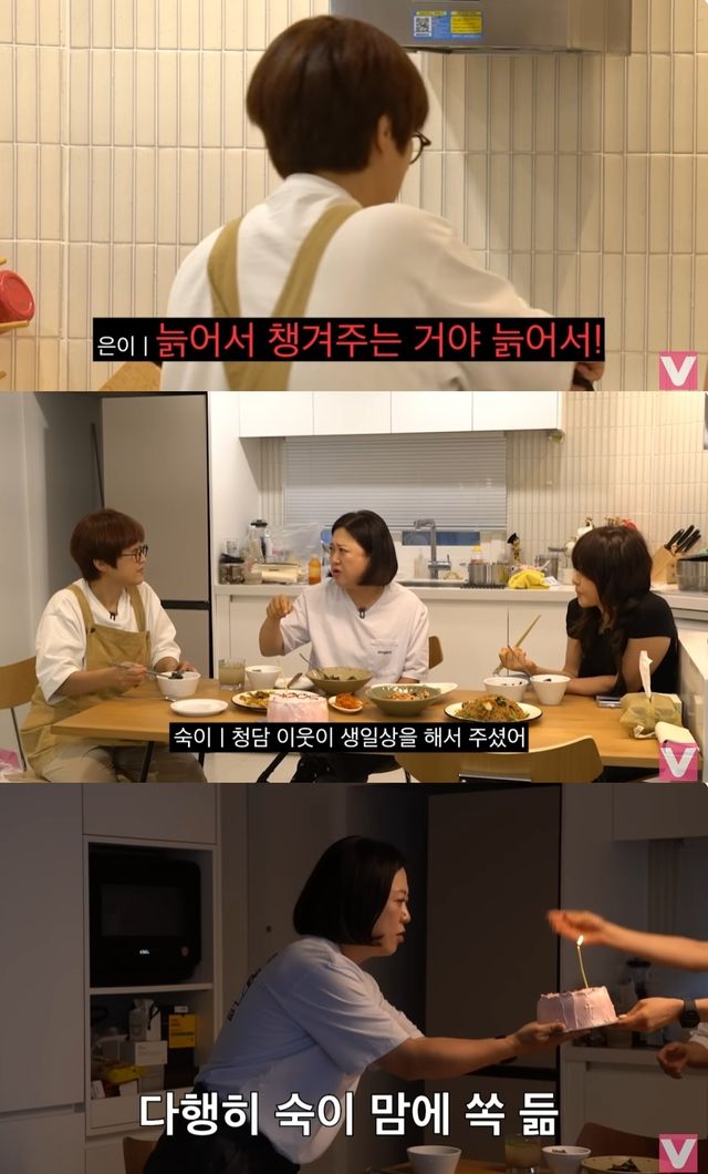 김숙이 "다 늙어서 뭘 생일을 챙기냐"고 하자 송은이는 "늙어서 챙겨주는 거다"라고 너스레를 떨어 웃음을 자아냈다.