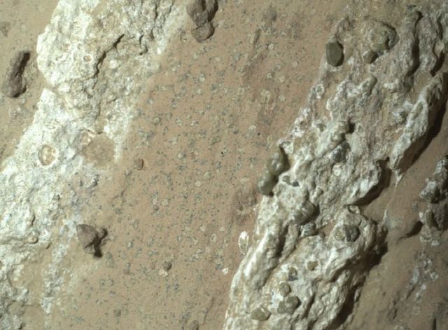 연구팀은 황산칼슘이 침착된 것으로 추정되는 흰색 광맥과 함께 철과 인산염으로 구성된 얼룩도 발견했습니다. 이는 수십억 년 전 로버가 탐사하는 지역에 흐르는 물이 있었을 때 생명체에 의해 형성됐을 가능성이 있는 화학적 특징과 구조를 보여줍니다.