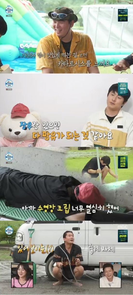 기안84가 이장우를 이긴 가운데 수영장 안에서 수영 대결이 진행됐다. 기안84는 배영에서 압도적인 강세를 보이더니 1등을 했다.