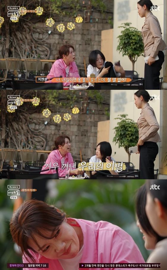 염혜란은 언니들과 함께 카메라가 없는 화장실로 향해 "내가 카메라 앞에서 우는 게 싫어가지고 제대로 말을 못 하겠다. 너무 잘해줘서 고마웠다. 힘든 상황일 텐데 잘해줘서 고맙다는 얘기를 하고 싶다"라고 말했다.