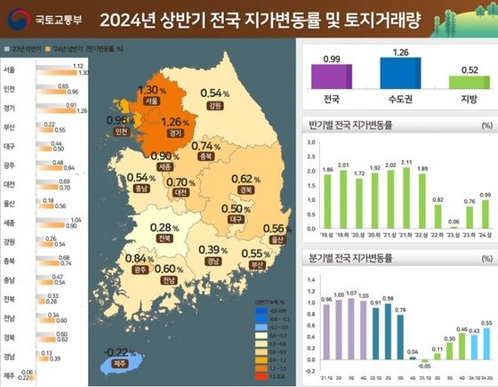 2024년 상반기 전국 지가변동률 및 토지거래량.(자료=국토교통부) |