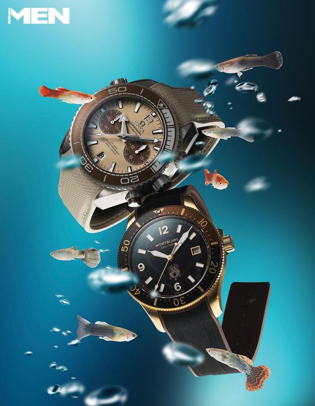 베젤 링과 푸셔, 서브 다이얼에 브론즈 컬러의 질화 규소 세라믹을 사용했다. 코-액시얼 마스터 크로노미터 칼리버 9900으로 구동하며, 60시간의 파워리저브가 가능하다. 씨마스터 플래닛 오션 600M 45.5mm.아쿠아레이서 프로페셔널 300.