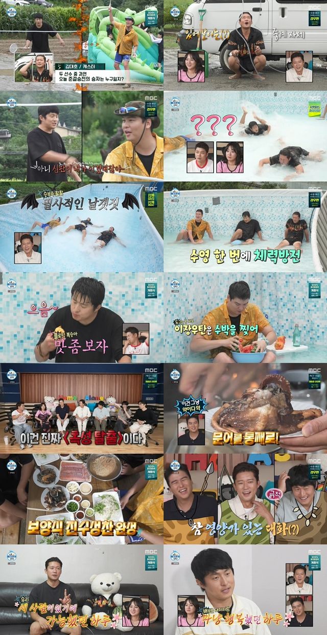 에너지를 쏟아낸 기안84, 김대호, 이장우는 김대호가 준비한 '플로팅 과일'을 직접 만끽하는가 하면, 수박씨 뱉기 게임을 하며 웃음꽃을 피웠다. 별거 아닌 것에도 행복감을 느끼는 세 사람의 닮은 모습에 무지개 회원들은 '혹성탈출이다', '원시인 세 명'이라며 놀려 폭소를 유발했다.