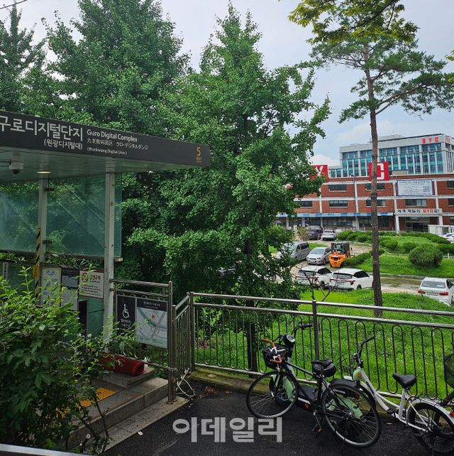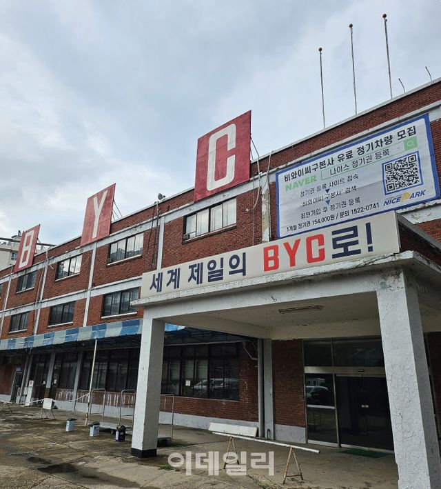 [이데일리 전재욱 기자] 26일 서울 지하철 2호선 구로디지털단지역 4·5번 출구로 나오니 익숙한 빨간색 로고가 눈에 띄었다. 섬유회사 BYC의 옛 본점 부지에 걸린 간판이다. 빨간색 내의로 대표되는 상품마따나 건물은 빨간 벽돌로 지었다. 육안으로 보더라도 낡은 태가 역력했다. 지상에 차량이 주차된 걸로 보니 실내(지하) 주차장은 없어 보였다. 오래된 건물 특징이다.