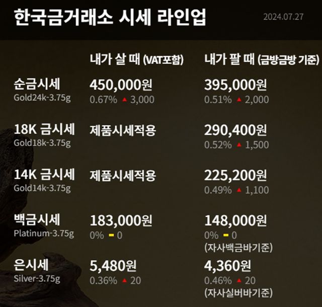 순금(24K) : 매입가 45만 원 / 매도가 39만 5000원