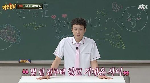 멤버들은 "사회 서장훈, 축가 이상민 어떠냐?"고 물었고, 민경훈은 "감사하다"며 "팬분들 많이 놀라셨을텐데, 따뜻한 격려와 축복을 많이 해주시길 바라겠다. 결혼을 공개한다는거 자체가 부담을 많이 느꼈는데, '아는형님' 안에 자연스럽게 이야기할 수 있게 해준 식구들, 친구들도 감사하다"고 인사를 전했다.