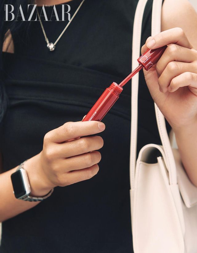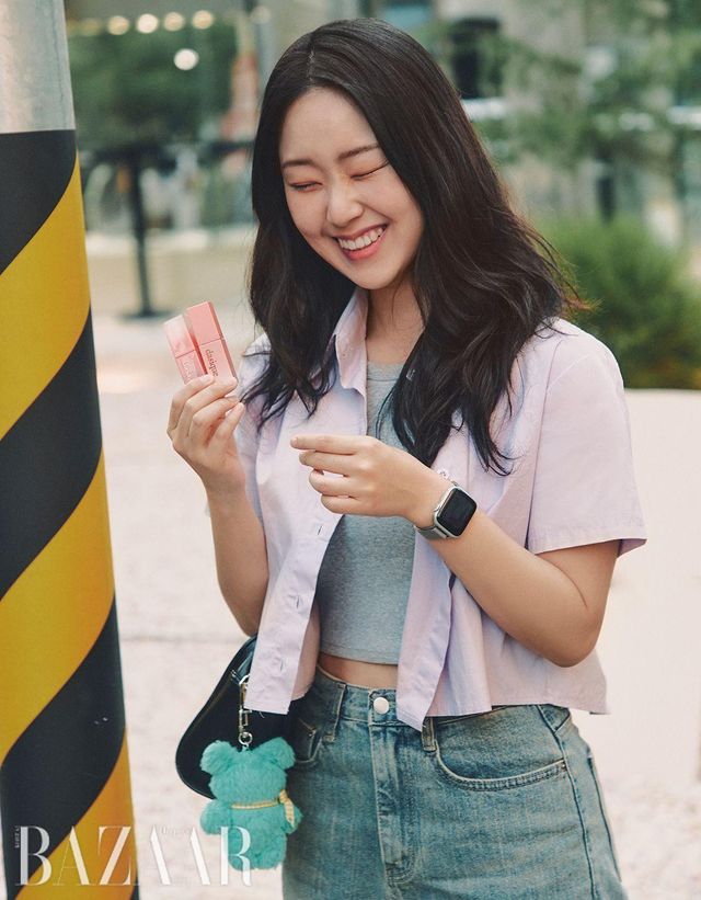 “맑은 광을 더하는 데이지크 ‘쥬시 듀이 틴트’를 컬러별로 소장하고 있어요. 주로 쿨톤 핑크 컬러의 03 핑크 구아바를 베이스로 사용하고 기분에 따라 색을 조합하죠. 오늘은 분홍 셔츠를 입었으니까