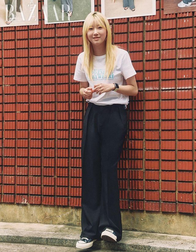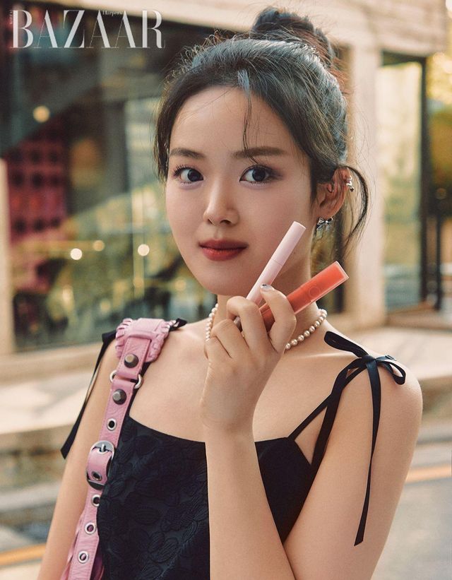 “메이크업에 관심이 많아 유행하는 건 다 해봐요. 소량만 발라도 꿀광을 만드는 클리오 ‘크리스탈 글램틴트’로 탕후루 립을 연출했어요.” 정채연(22)