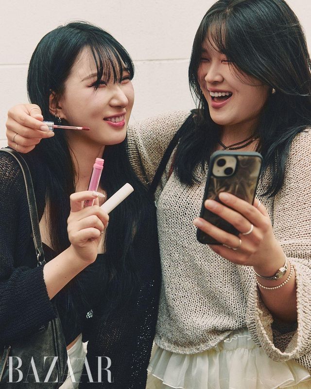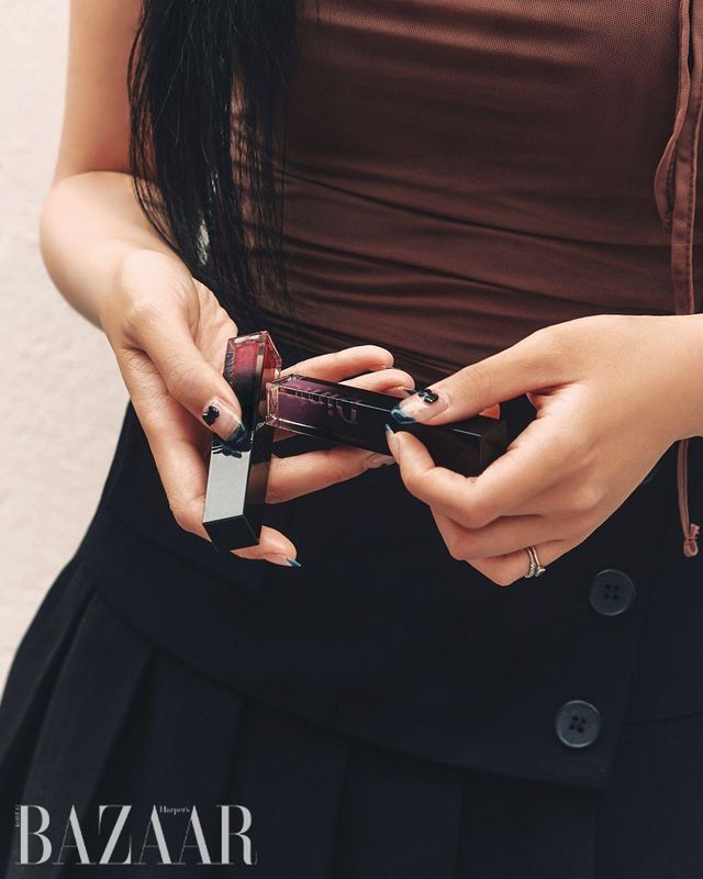 “릴리바이레드 ‘글래시 레이어 픽싱 틴트’의 14 슬러시드 핑크를 늘 베이스로 사용해요. 안색을 밝히고 지속력도 좋거든요. 오늘은 삐아 ‘글로우 립 틴트’ 07 레이지 브리즈를 더해 분홍빛으로 무장했어요.” 김나윤(21)