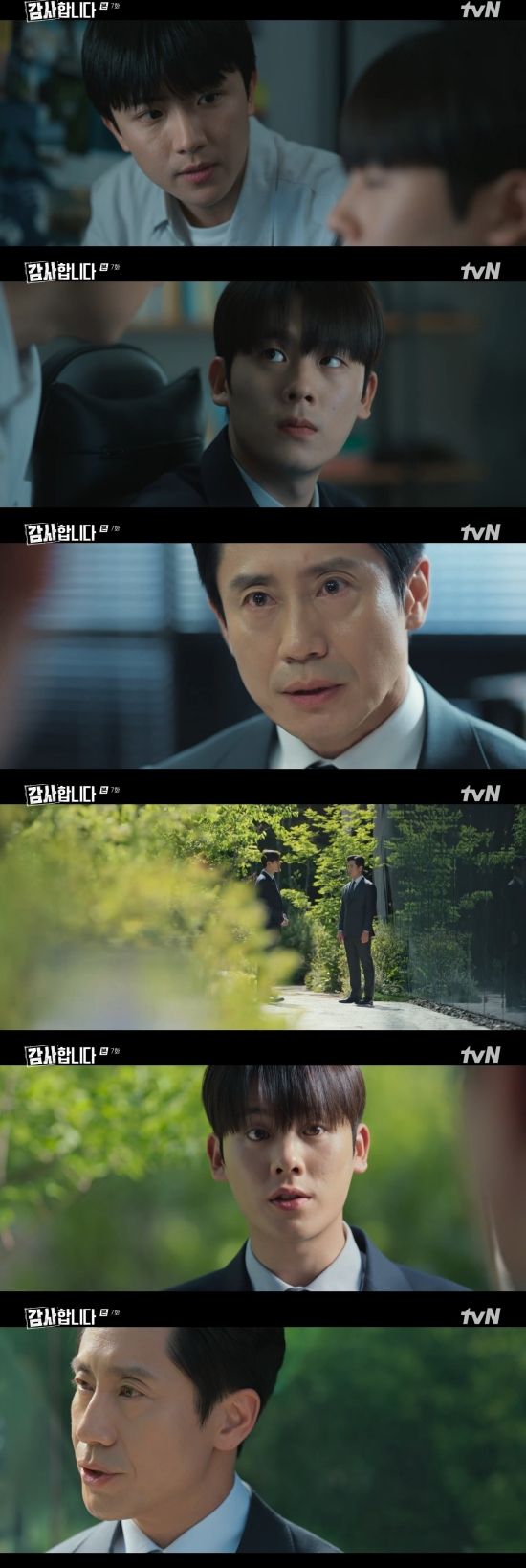 27일 방송된 tvN 토일드라마 '감사합니다' 7회에서는 신차일(신하균 분)과 구한수(이정하)가 비공식적으로 이지훈(신재하)을 조사하는 모습이 그려졌다.