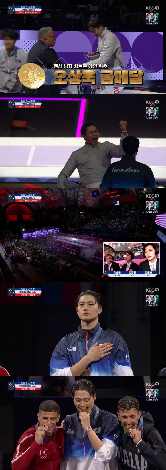 특히 28일 새벽(이하 한국시각) 펜싱 남자 사브르 개인전에서 오상욱이 짜릿한 금메달을 목에 걸자, '원조 어펜져스' 김정환X김준호 KBS 해설위원은 "그냥 너무 신기하고 대견하다"며 "예견은 했지만 실제로 눈앞에서 보니 우리 상욱이가 너무 대견하고 가슴이 뭉클해진다"고 감격했다.