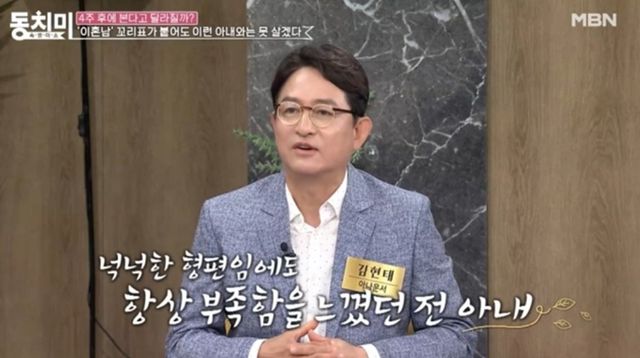 27일 MBN '속풀이쇼 동치미'에서 김현태는 "2002년 이혼했다. 당시 K본부 스포츠 뉴스 앵커를 하고 있었다. 나는 전 배우자의 경제관념 때문에 이혼했다"고 말문을 열었다.