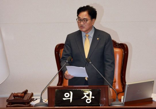 우 의장은 “이미 주 부의장도 보여준 사실이다. 지난 3일 개의한 본회의, 순직해병 특검법안에 대한 무제한토론은 사회를 보지 않았나”며 “그때는 되고 지금은 안 되는 이유가 무엇인지 납득할 수 있는 설명이 있어야 한다”고 지적했다.