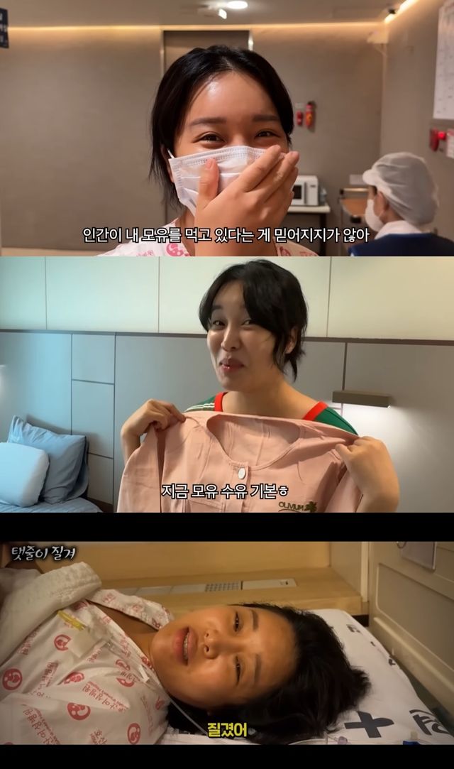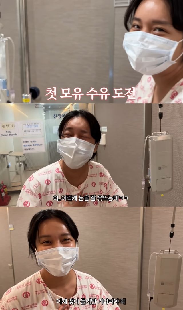 출산 4일 차에도 그는 모유를 들고 신생아실을 찾았다. 그는 "이렇게 젖병을 드리면, 또 새로 짜오라고 새로운 젖병으로 교환해주신다"고 설명했다.