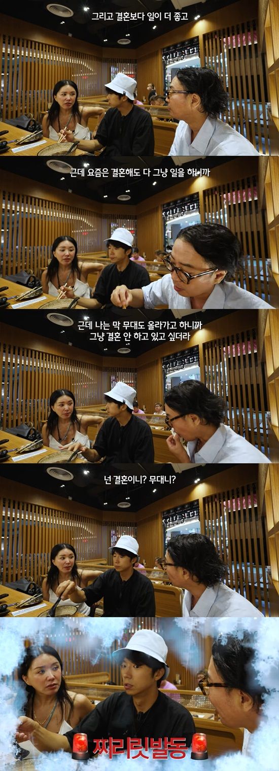 식사 중 엄정화는 "나는 결혼이 정말 자신이 없더라. 그런데 결혼보다 일이 더 좋다"며 다시 결혼 이야기를 꺼냈다.