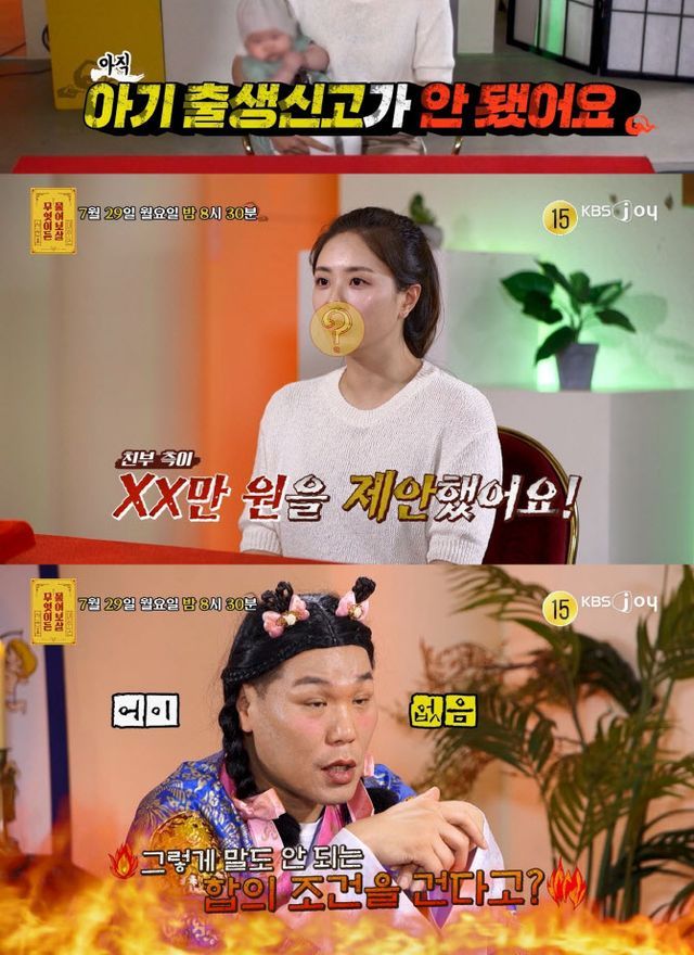 지난번 출연에서 양육비는 변호사를 통해 꼭 받으라는 조언에 따라 변호사를 선임, 양육비에 대해 협의를 진행 한 바 있다는 김카니는 출산 전 친부의 변호사를 통해 “선임한 변호사비와 전체 양육비를 합쳐 XX만 원 주겠다”고 제안받았다고 하자 서장훈은 “그렇게 무식하게 얘기한다고?”, 이수근은 “바닥이네”라며 어이없어 한다.