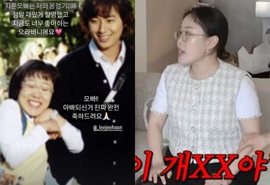 박슬기는 '몽정기' 때 이지훈과 찍은 사진과 함께 "오빠, 아빠 되신 거 진짜 완전 축하드려요"라는 글도 덧붙였다.
