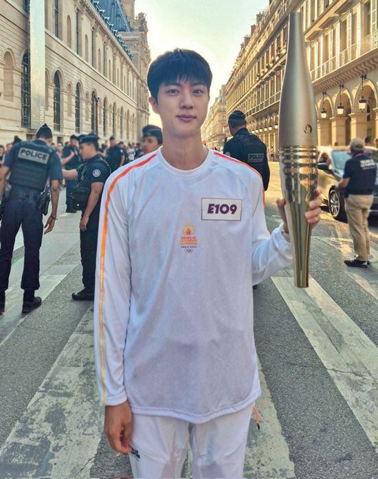 그런가 하면, 방탄소년단 맏형 진은 군대 전역 후 첫 해외 일정으로 올림픽 성화 봉송 주자로 나서 화제를 모았다. 그는 지난 14일(현지시간) 파리 루브르 박물관 구간 첫 번째 주자로 나서 성화를 들고 일부 구간을 직접 뛰었다.