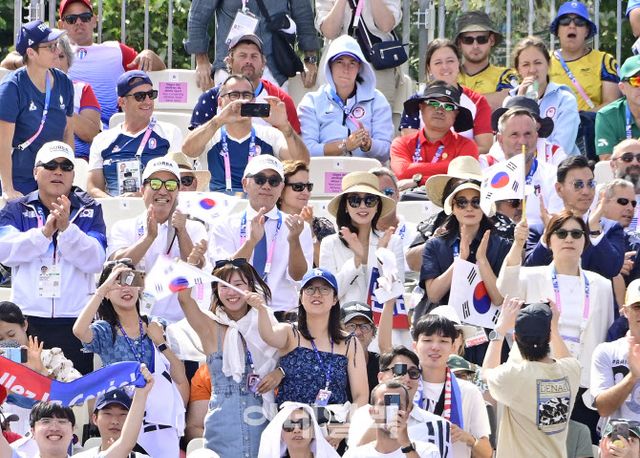 이날 결승 관중석에서는 대한양궁협회장과 아시아양궁연맹회장을 맡고 있는 정의선 회장과 그의 아내, 이서현(오른쪽 두번째) 삼성물산 사장과 남편인 김재열(네번째줄 오른쪽) 국제올림픽위원회(IOC) 위원이 나란히 앉아 대한민국 대표팀을 응원하는 모습이 포착됐다. 이날 정 회장은 직접 시상자로도 나서 금메달을 획득한 선수들에게 기념품을 전달하고 축하했다.