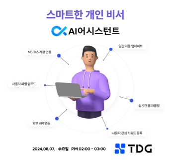 이와 관련해 이석중 티디지 대표는 "AI 어시스턴트는 사용자 주변의 데이터를 끊임없이 분석하고 학습하면서 진화하는 인공지능 챗봇으로 기존 AI툴의 단순한 작업 처리를 넘어, 창의적인 업무 인사이트를 제안하는 솔루션"이라고 설명했다.