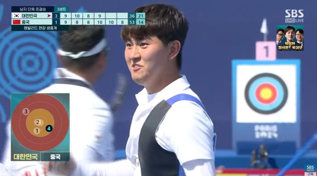양궁 남자 대표팀은 파리 앵발리드에서 열린 양궁 남자 리커브 단체 금메달 결정전에서 프랑스를 5-1( 57-57 59-58 59-56)로 압도하며 금메달을 목에 걸었다. SBS 양궁 중계에는 '올림픽 5관왕 부부' 박성현·박경모 해설위원, 정석문 캐스터가 함께했다.
