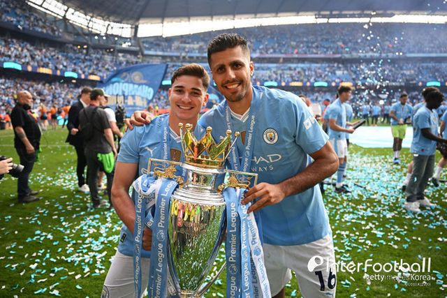 지난 시즌 활약도 좋았다. 시즌 초반 케빈 더 브라위너와 엘링 홀란드가 부상으로 전열에서 이탈하자 알바레스가 공백을 잘 메웠다. 54경기 19골 13도움을 기록하며 맨시티의 프리미어리그(PL) 4연패에 공헌했다.