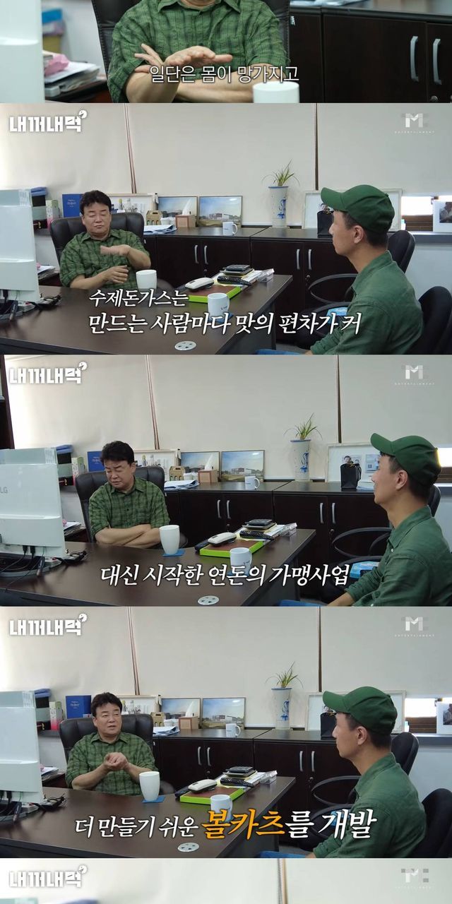 이어 "볼카츠 시작했던 것은 이유가 딱 그거다. '골목식당' 인연으로 (사장님을) 모셔오면서 회전도 빨리 하면서 수익을 올려야 하는데 본인 성격상 그게 안된다. 고기기 하나하나를 직접 두드려야 하니까 일단은 몸이 망가진다. 사장님 성격이 안되니까 프렌차이즈 해주겠다고 해서 시작된 거다"라고 말했다.