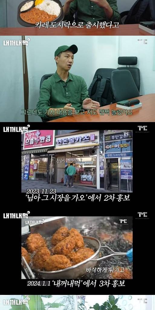 연돈 사장은 "계속 지속적으로 메뉴를 개발해 줬는데 기사 보고 깜짝 놀랐다. 아무것도 안 해줬다고 해서"라고 이야기했다. 영상에는 연돈볼카츠 도시락 등 신메뉴를 '축지법'에서 홍보, '님아 그 시장을 가오'에서 2차 홍보, '내꺼내멱'에서 3차 홍보했다는 사실이 담겼다.