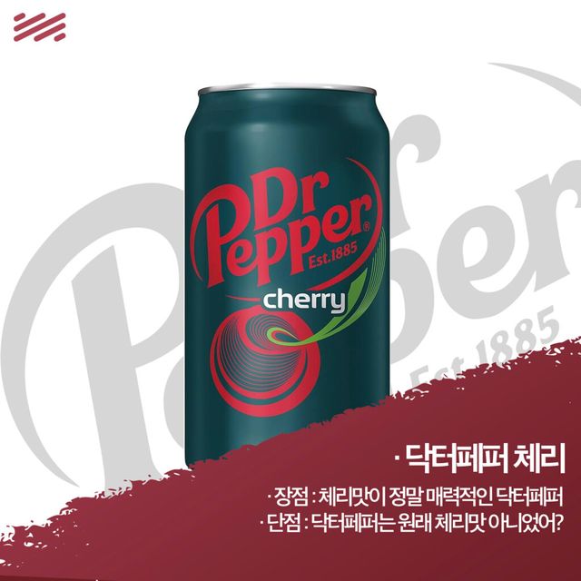 닥터페퍼 체리는 닥터페퍼 매니아들 사이에서도 맛으로 좋은 평가를 받는다. 하지만 항상 주변의 일반인들에게 소개하려면 설명을 구구절절 붙여야 하는 단점이 있다. “그러니까 일단, 닥터페퍼는 원래 체리향이 아닌데 이것은…”