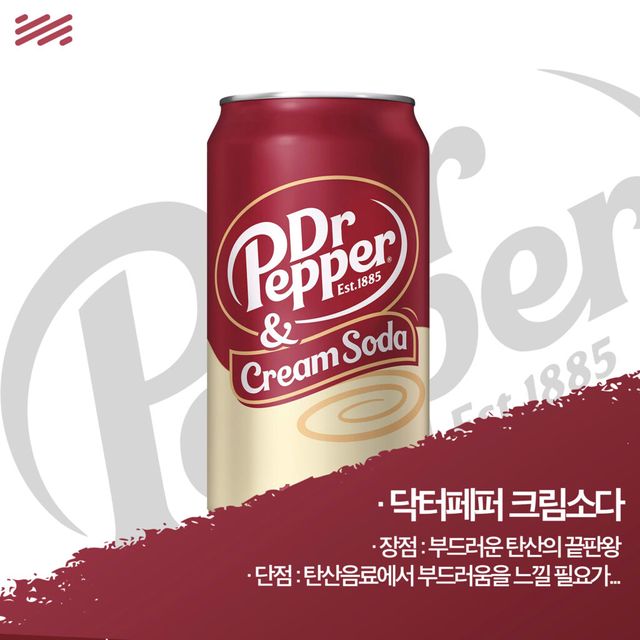 탄산음료를 맛있게 먹는 의외의 방법 중 하나는 ‘바닐라 아이스크림’을 띄워 마시는 것이다. 닥터페퍼 크림소다는 마치 닥터페퍼에 바닐라 아이스크림을 탄듯한 부드러움을 자랑하는 탄산음료다. 오묘한 닥터페퍼 향에 달콤하고 부드러운 맛이라니!