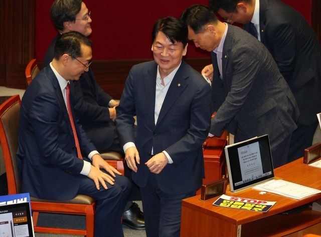 채상병 특검 찬성파인 국민의힘 안철수 의원이 지난 특검 재표결 국면 당시 한동훈 대표가 본인에게 반대 표결을 부탁했다는 보도와 관련 "직접적으로 그렇게까지 말씀은 안 하시고, 여러 가지로 그 문제에 대해서 서로 고민을 이야기를 하고 솔직하게 대화를 했다"고 밝혔다.